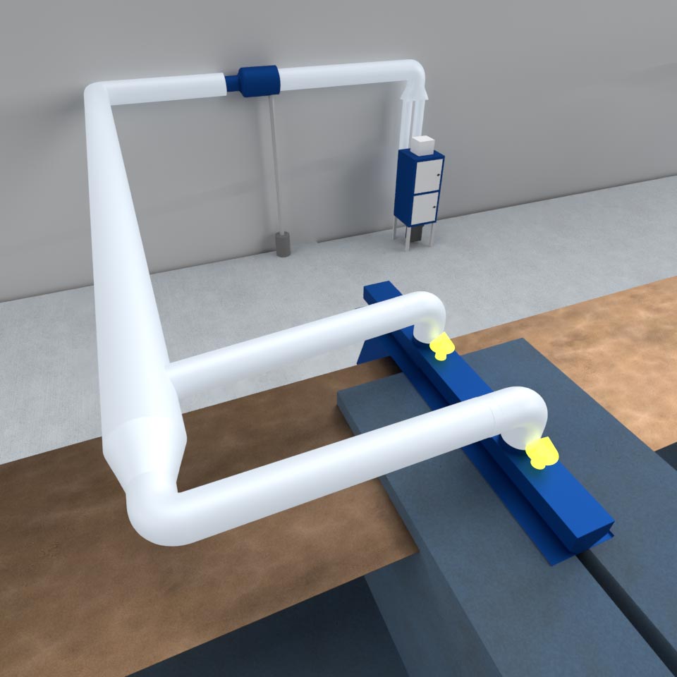 Bu bölgelere uygun olarak ve uygulamayı engellemeyecek şekilde slot davlumbazlar ile emiş hızlarını yükselterek maksimum verimlilikte emiş aparatları tasarlanması kararlaştırılmıştır.