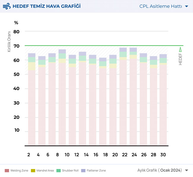 Müşterinin şikayeti olan tufal atıkların toplanmasındaki beklenti %60 olmasına rağmen %65-70 oranında başarı ile ortam daha solunabilir bir havaya sahip olmuştur. 3 vardiya bakım duruşu da tek vardiyaya düşürülmüştür.