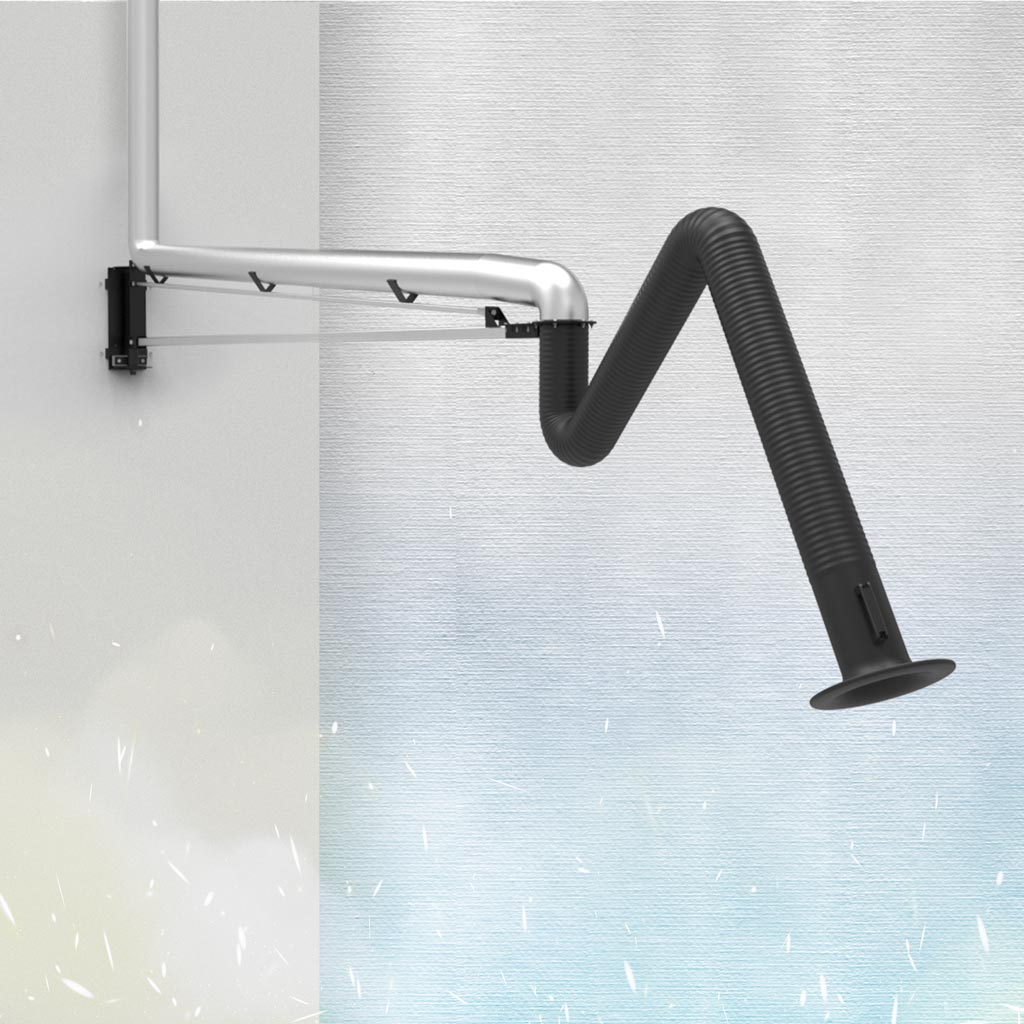 Stationary Snail Exhaust Fan volute with acrobat arm. It is used in workshops where there is no need for filters and space restrictions. Fully compliant with European machinery safety regulations.